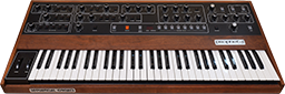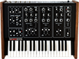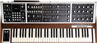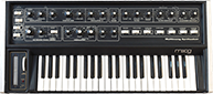 1978. Mono. Two oscillator version of the Minimoog but with a separate LFO, sample and hold, ribbon controller and aftertouch. We love this for bass sounds.