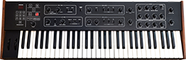 1986. Sixteen voice vector synthesis poly, with joystick to crossfade between four VCOs. Onboard arpeggiator and chorus. Brilliant for new and evolving sounds.
