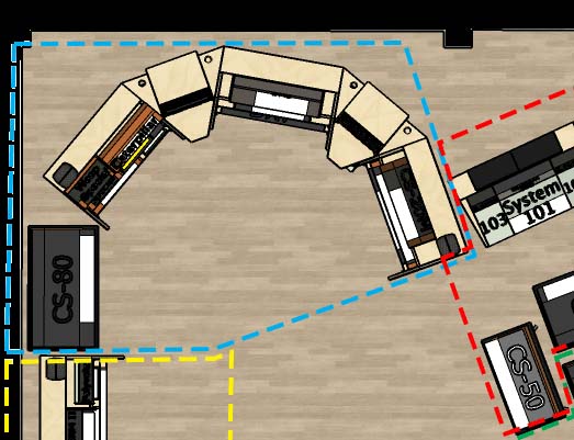 We have conveniently grouped the equipment in Studio 1 into 9 “Synth Pods”, each of which has its own patchbay array, outboard effects, pre-amps, tuner, DIs, A/D and D/A, headphones, local monitors and MIDI. There is no need to move any of the keyboards (although you can if you want). Just plug in and start playing with everything at the right height, recording through a pristine audio path and listening through headphones and Genelec monitors. These Synth Pods can operate independently or can route audio and MIDI to and from a central control desk.